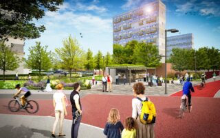 The attractive new space also features dedicated toddler and children’s play spaces with climbing frames and slides, as well as a bicycle pump track and cycle storage facilities to encourage active travel.
